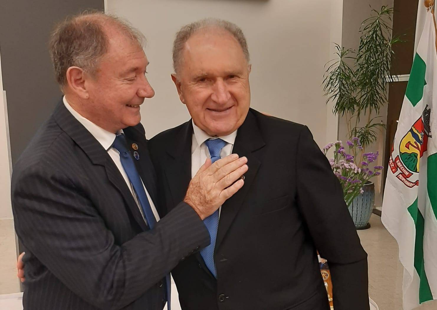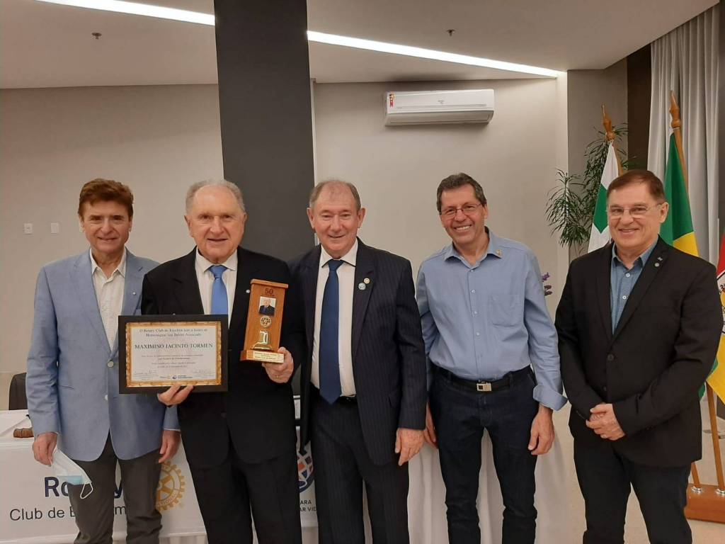 Continuando a divulgação da Reunião Festiva, a noite foi de homenagens pela entrega do Troféu outorgado pelo Rotary Internacional, Governadoria do Distrito 4700 e pelo Clube aos companheiros Maximino Jacinto Tormen e Pedro Paulo Sponchiado, que completaram 50 e 61 anos de participação em Rotary, respectivamente. O companheiro Pedro Sponchiado ingressou no clube em 09/12/1960 pela classificação Automóveis Distribuição, o Maximino Tormen em 15/04/1971 pela classificação atual Industria de Papel.