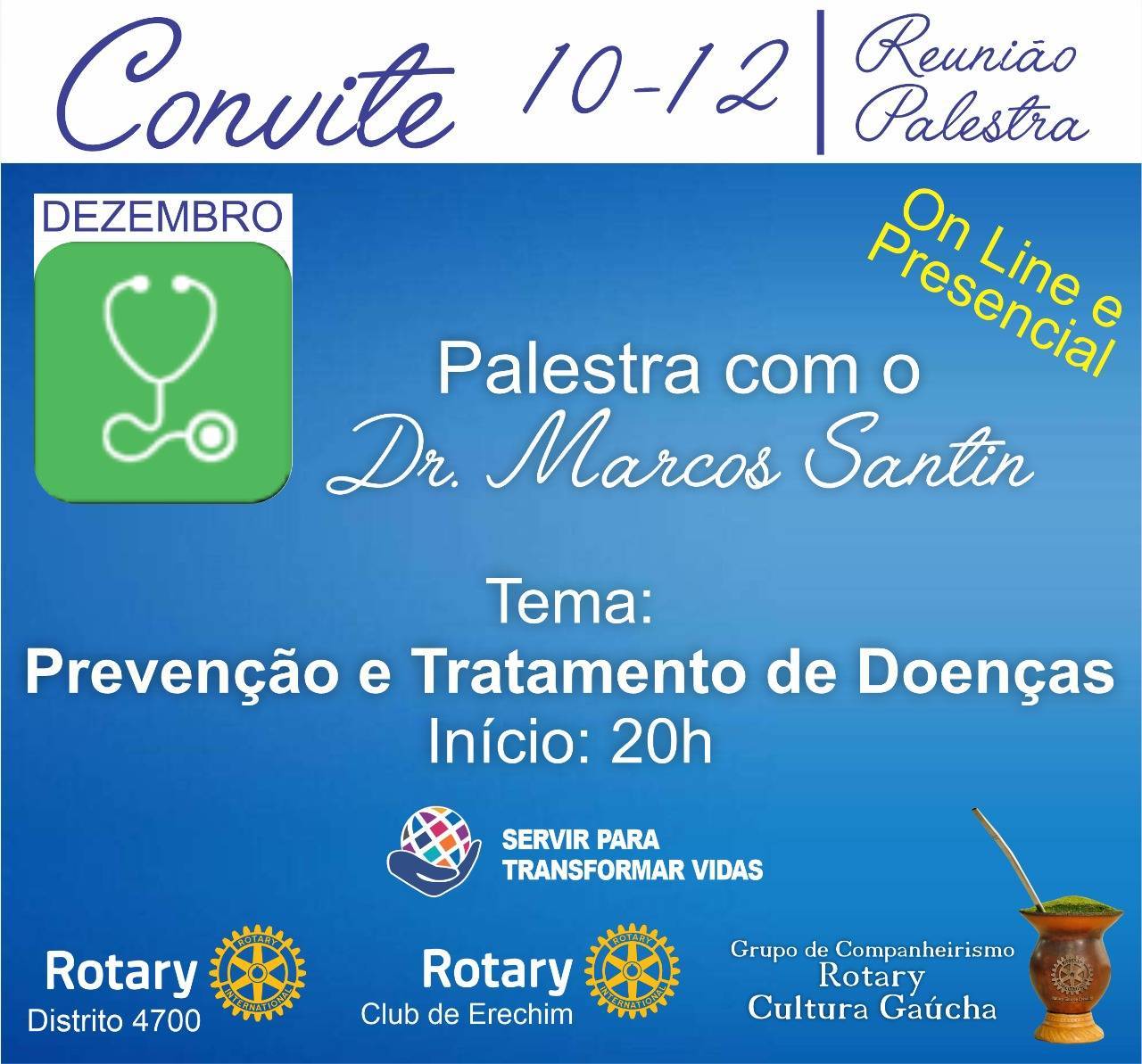 Reunião Palestra com Dr. Marcos Santin sobre "Tratamento e Prevenção de Doenças", conforme orientaçao do Rotary Internacional para o mes de dezembro.