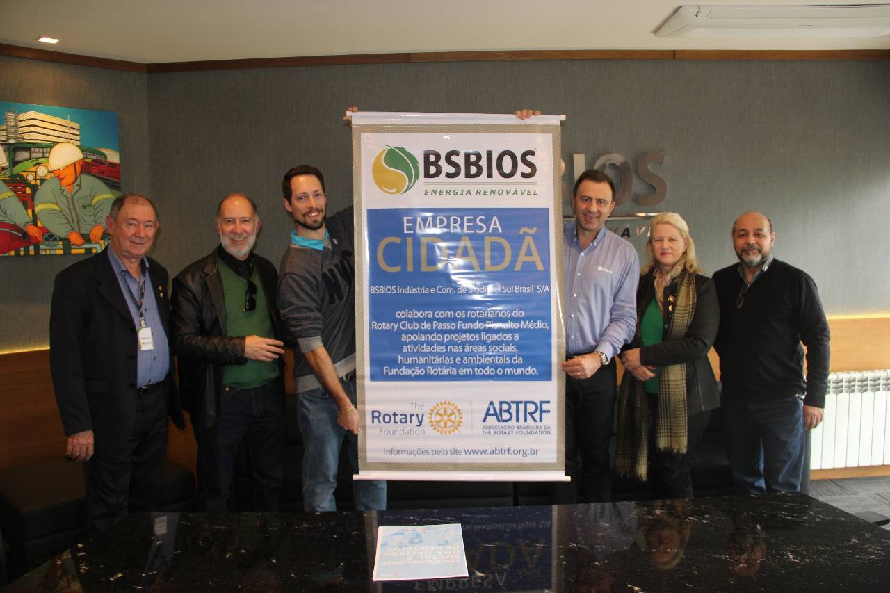 O Rotary Club de Erechim através do Presidente 2021/2022 Roberto Magnos Ferron, juntamente com A governador Evaniza Quevedo entregam o Título de empresa Cidadã à Empresa BSBIOS de Passo Fundo.